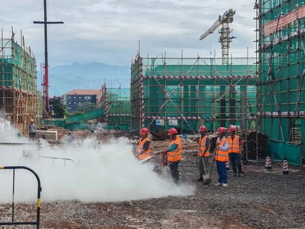 上午9時,公司黨委副書記、總經理邢路宣布演練正式開始。本次演練精心設計了施工現場綜合辦公樓及鋼筋加工區(qū)電氣短路引發(fā)火災的模擬場景,系統(tǒng)演練了火災報警、人員疏散、初期滅火、醫(yī)療救護等全流程應急處置環(huán)節(jié)。演練過程中,各應急小組反應迅速、配合默契:疏散引導組高效組織作業(yè)人員沿預定路線有序撤離;滅火行動組熟練運用滅火器、消防水帶快速控制火勢;醫(yī)療救護組專業(yè)實施心肺復蘇并完成傷員轉運;通信聯絡組規(guī)范對接外部救援力量。整個演練過程組織嚴密、處置得當,充分展現了參演人員的應急處置能力。