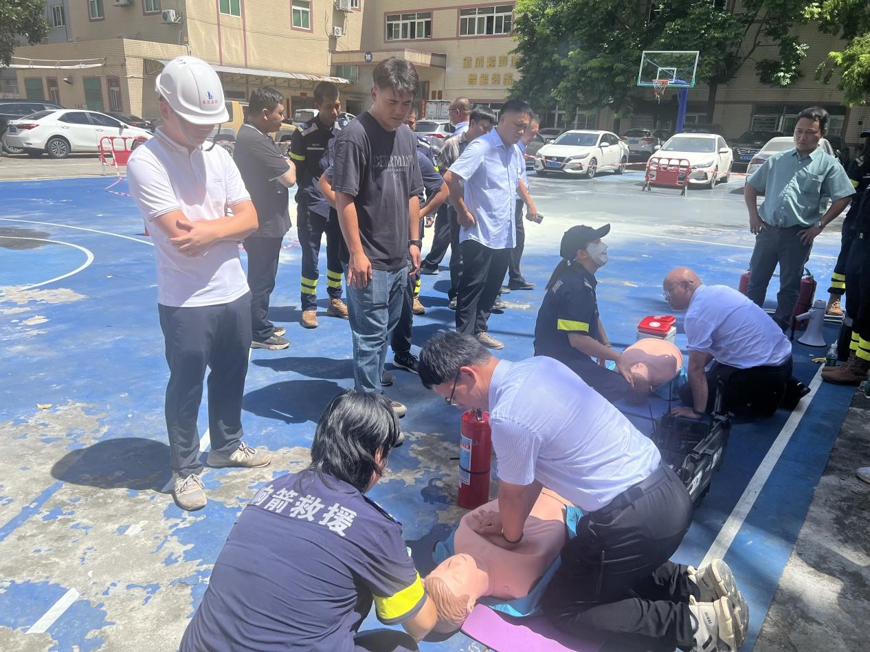 ?心肺復(fù)蘇救援競賽。在模擬“工人觸電昏迷”場景中,各小組輪流實施CPR救援,從判斷意識、胸外按壓到人工呼吸,嚴(yán)格遵循“30:2”黃金比例,救援中心專家對按壓深度、頻率進(jìn)行實時監(jiān)測,確保動作規(guī)范有效。